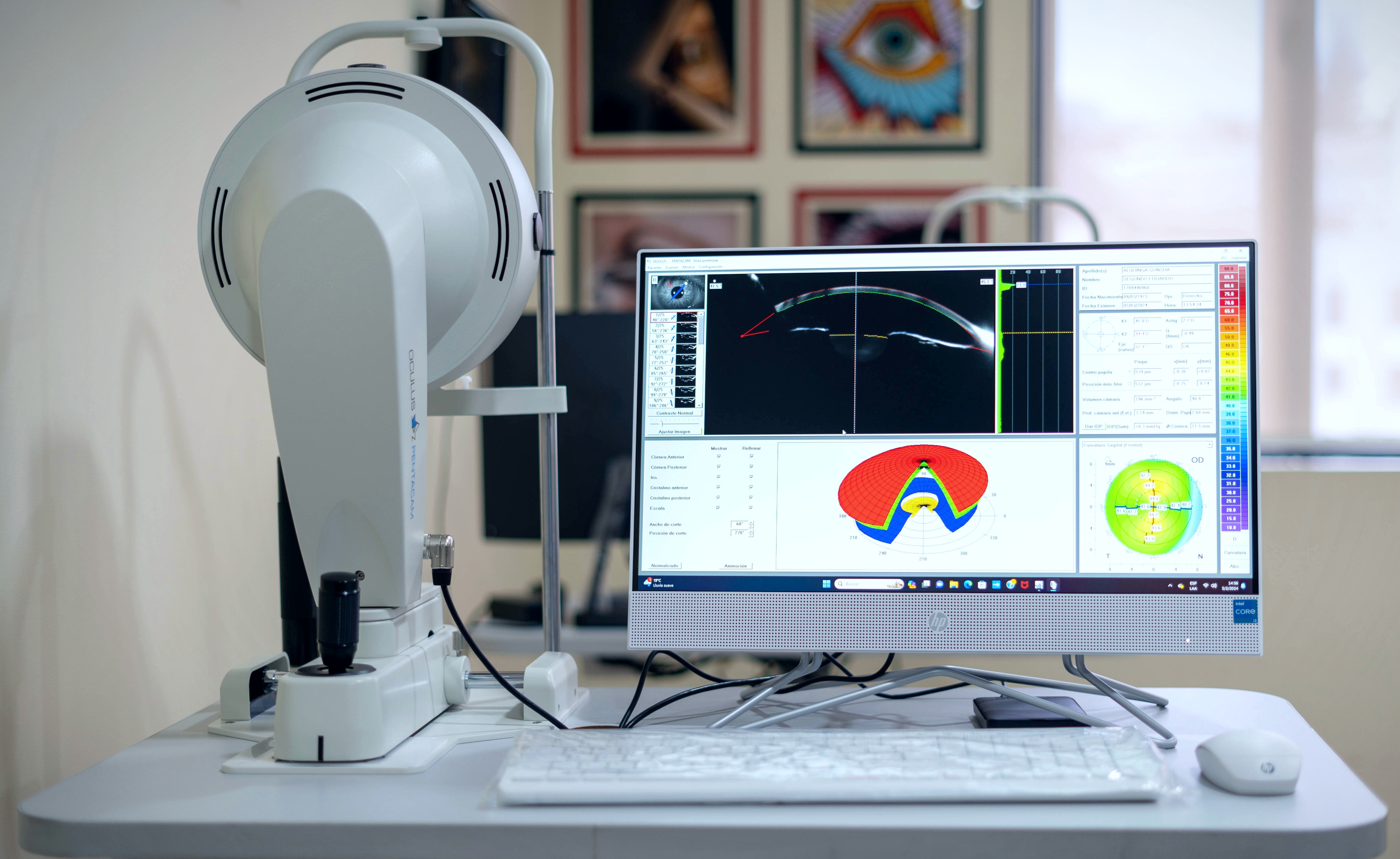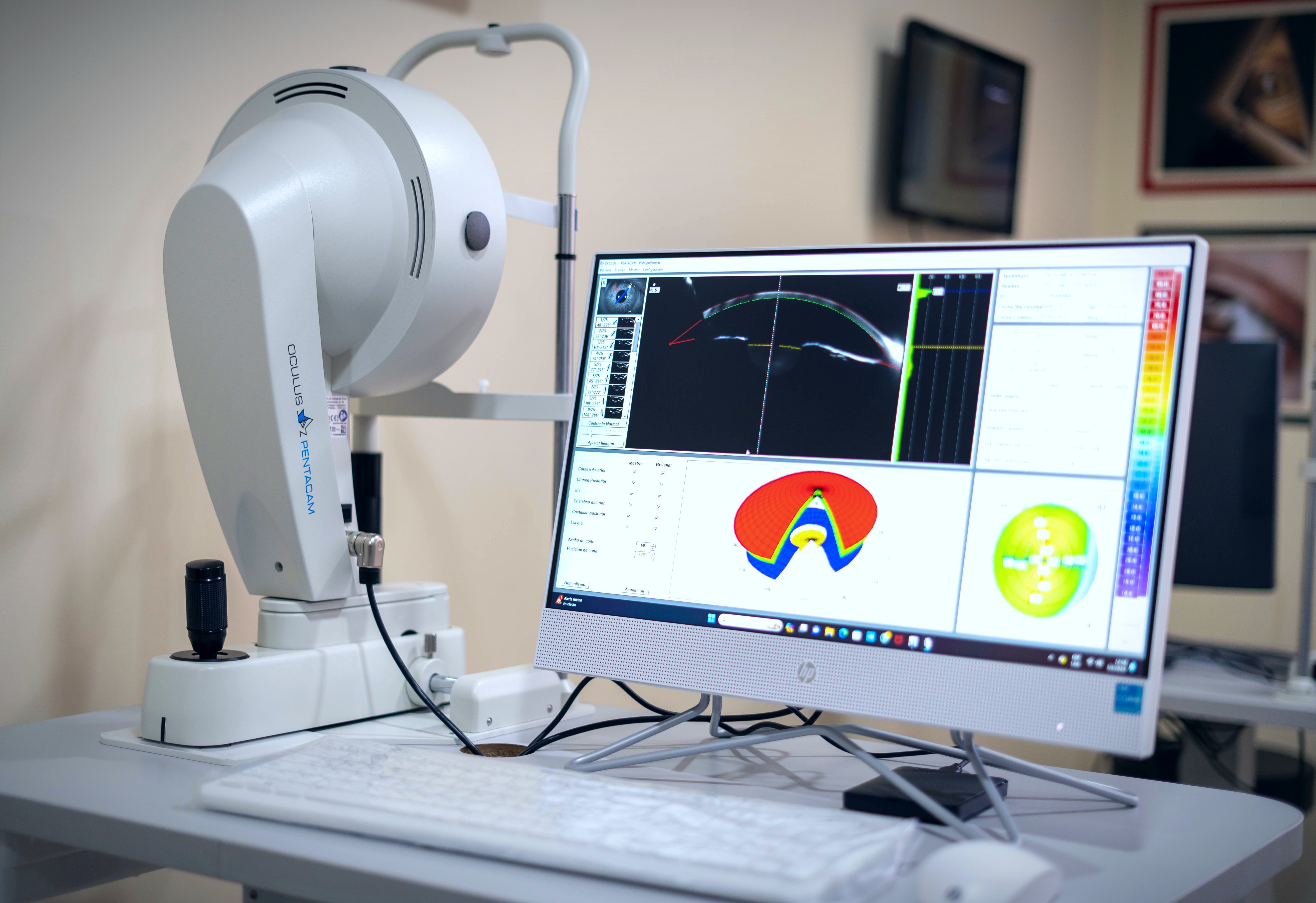 La topografía corneal es un estudio especial oftalmológico, que nos ayuda a valorar la estructura de la córnea, específicamente su regularidad, su ortogonalidad, el grosor de la córnea, entre otros parámetros matemáticos. Así mismo, el Oculus Pentacam nos ayuda a esclarecer qué está pasando con esa córnea del paciente y saber si puede operarse de Excimer Láser para dejar de usar lentes. Este equipo nos podría dar una información muy valiosa si el paciente es buen candidato o no para dicha cirugía.